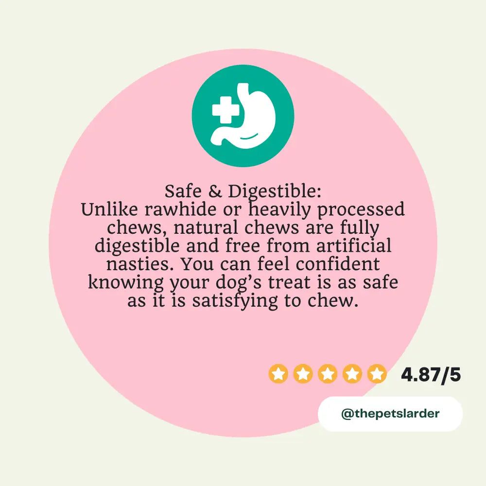 High in Protein: With an impressive protein content of 85%, this chew supports your dog’s muscle development and maintenance. Protein is vital for a dog's overall health, contributing to muscle growth, repair, and energy levels.