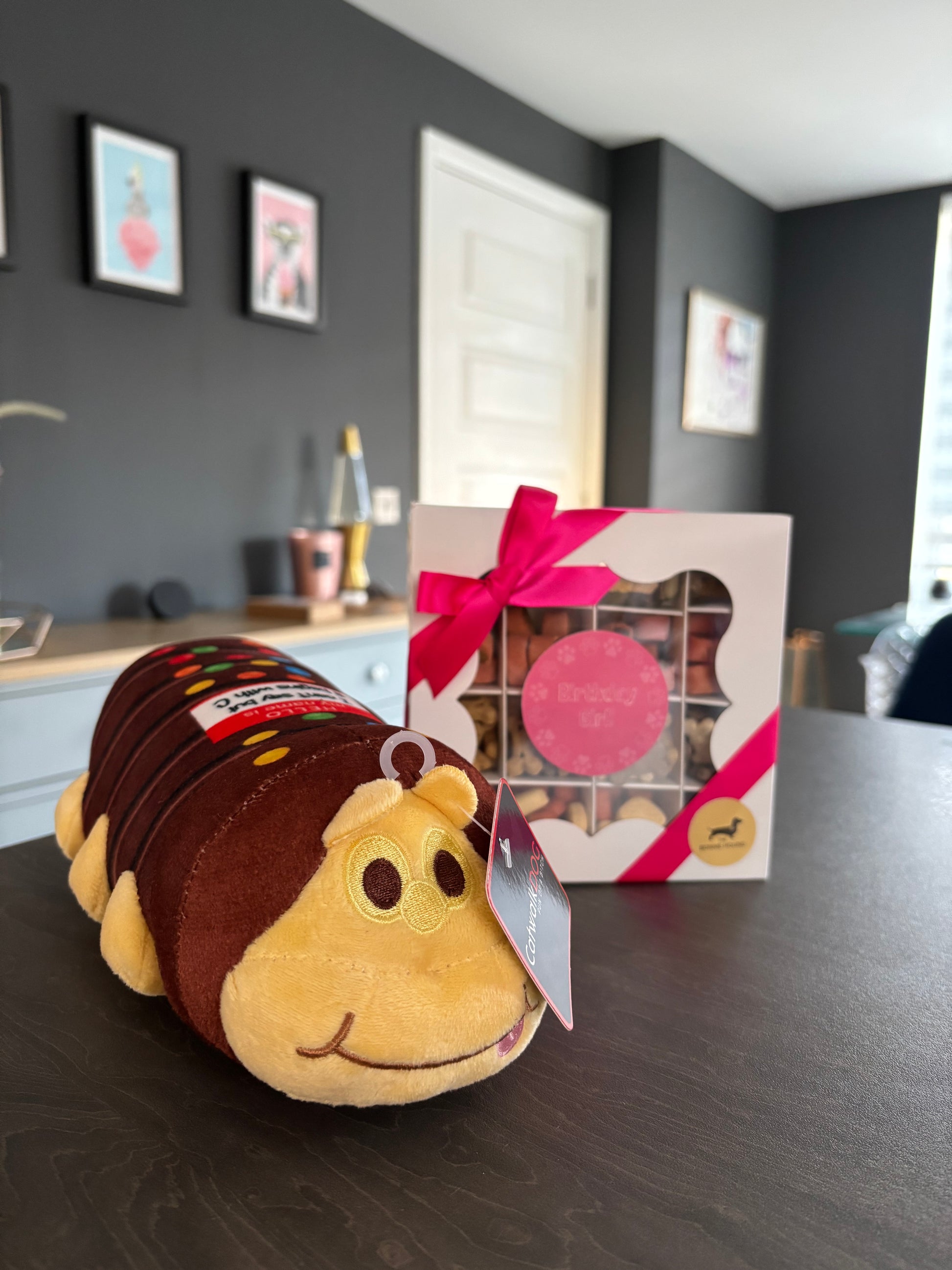 Well, this won’t be controversial… we made a caterpillar cake toy but we can’t think what to call him. He says his name begins with c but he refuses to say any more than this. Did he come from a dog or a dog or even barks, never mind. Approx 25cm.