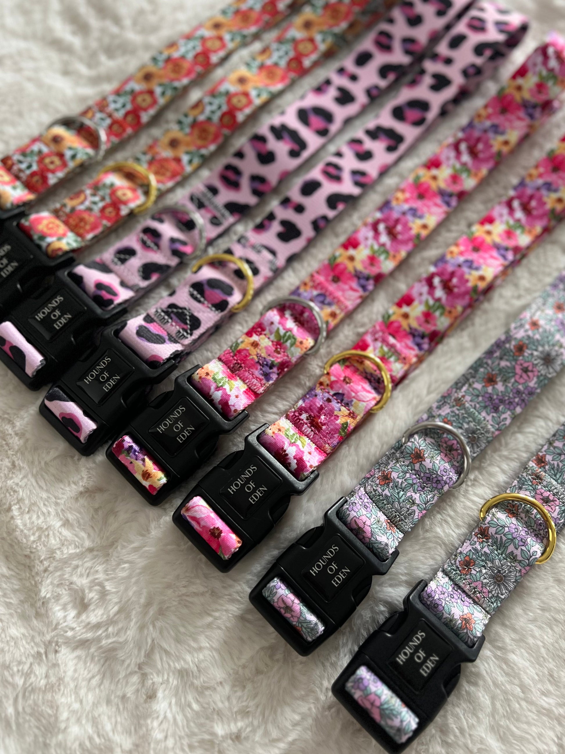 - Comfortable wide fully adjustable shoulder strap with faux leather detailing, silver or gold hardware & D-ring for clipping small matching treat & poop bag pouch to.