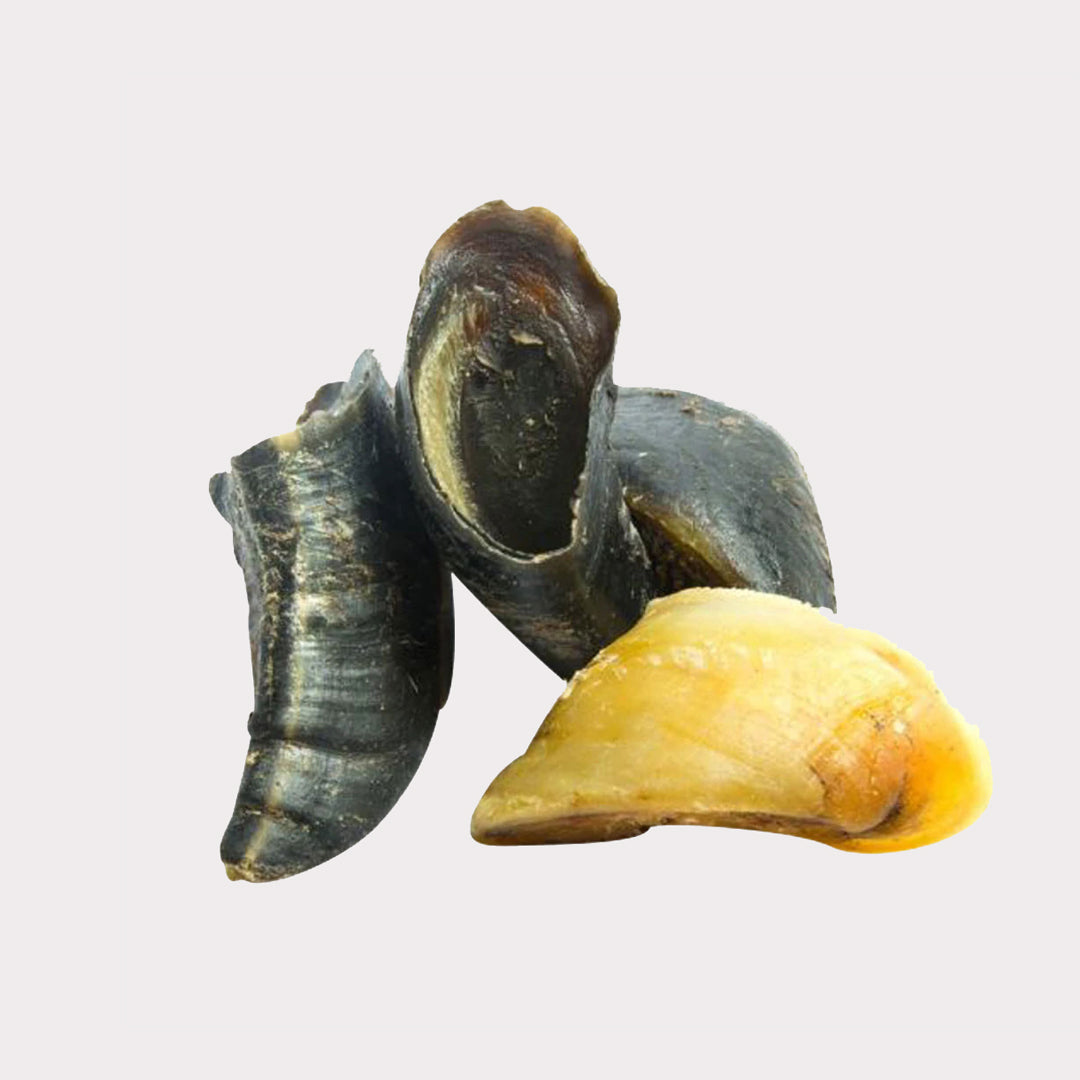These natural cow hooves are cleaned, trimmed, cooked then dried, with no artificial preservatives or chemicals used in their manufacture.