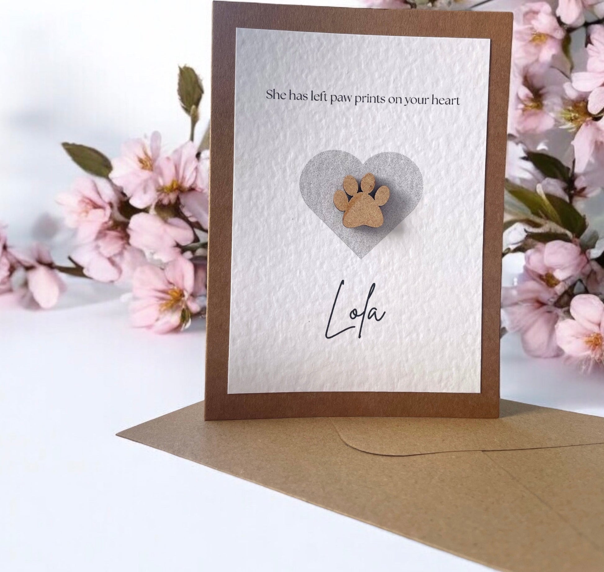 Pawprints on your Heart - Personalised Greeting Card (Pet loss, pet bereavement)