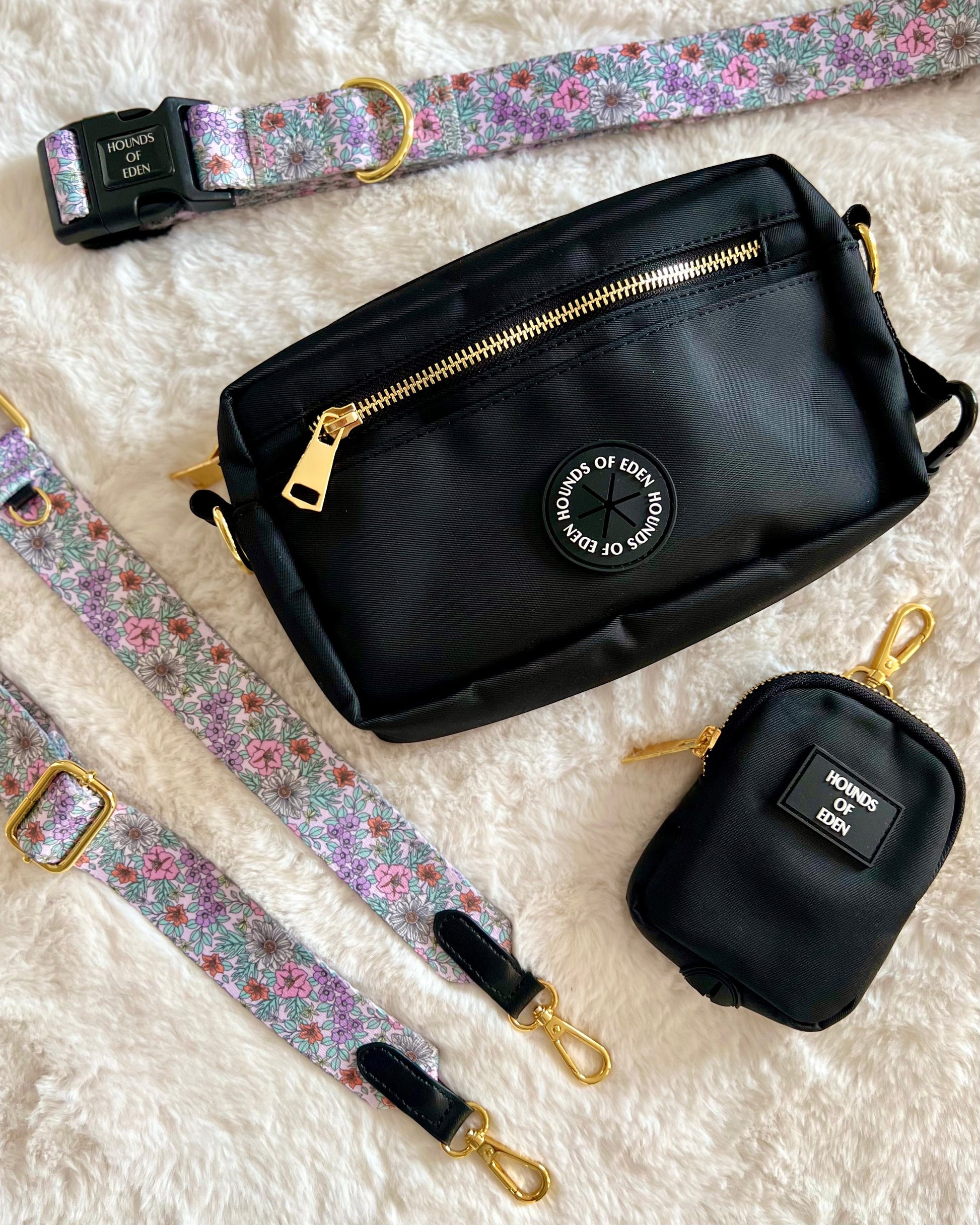 - D-ring for attaching matching small treat & poop bag pouch.