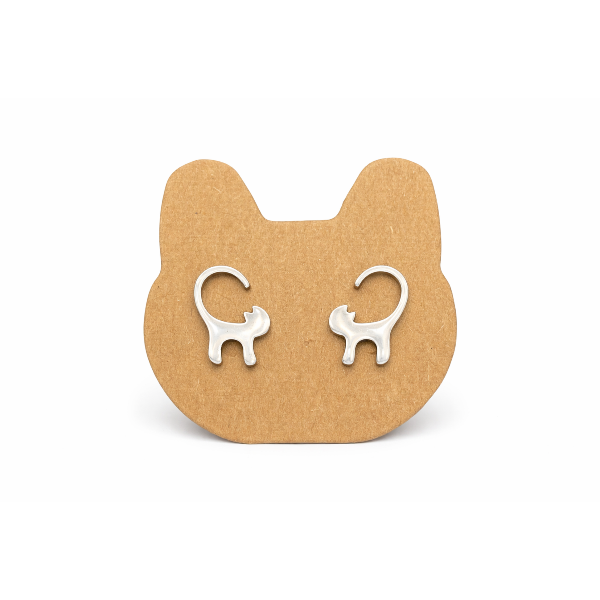 Stainless Steel Cat Stud Earrings – Minimal Cat Lover Jewellery